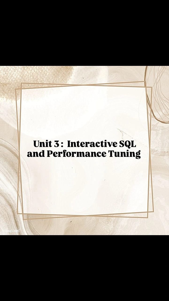 Unit – III Interactive SQL and Performance Tuning